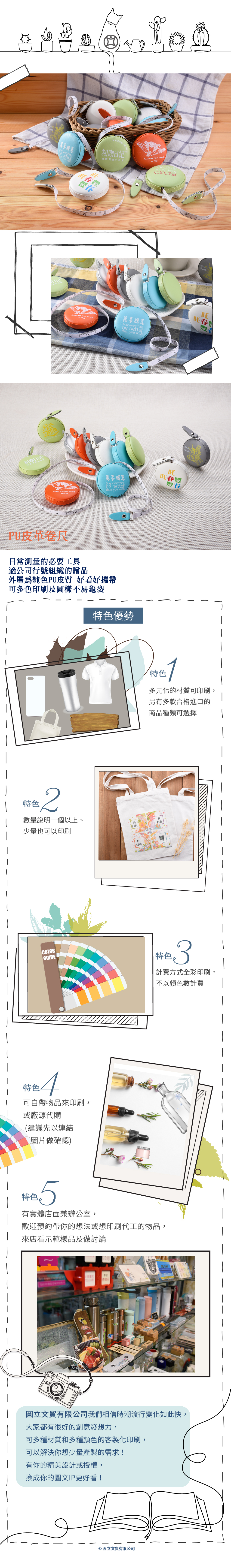 客製化印刷PU皮革卷尺 日常測量的必要工具 適公司行號組織的贈品 外層為純色PU皮質 好看好攜帶 可多色印刷及圖樣不易龜裂